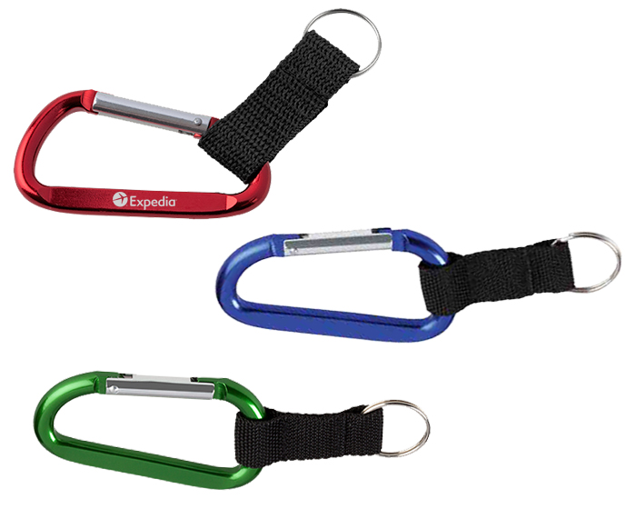 Clip-gancho de metal con cinta de poliester y arillo para llaves.